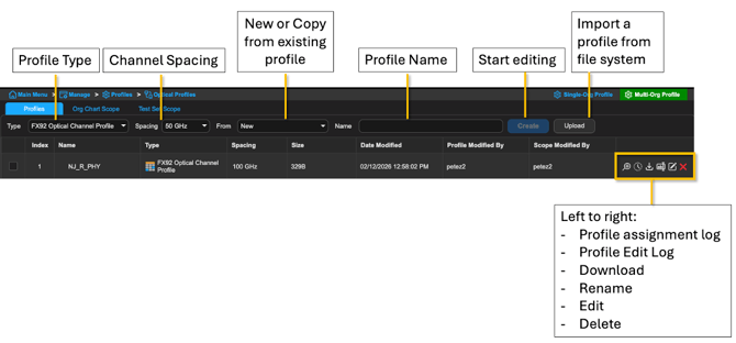 You can edit an Optical Channel profile when you create it, when you upload it, or by clicking its Edit button.