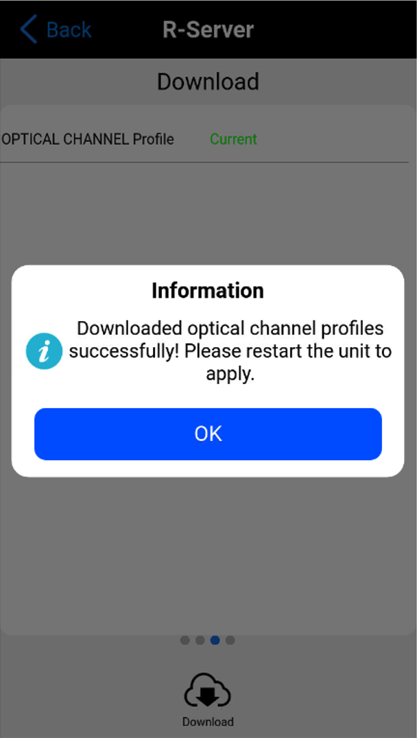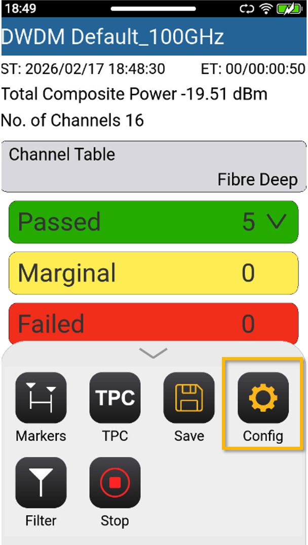 After selecting an Optical Channel profile, return to the main Configuration page by pressing Back or by tapping the selected profile again.