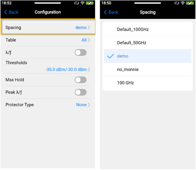 - Tap Spacing. All downloaded Optical Channel profiles are located here.